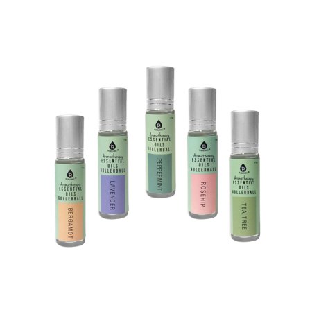 10. Pursonic aromatherapy essential oils rollerball 5 pack, bergamot, lavender, peppermint, rose hip, tea tree